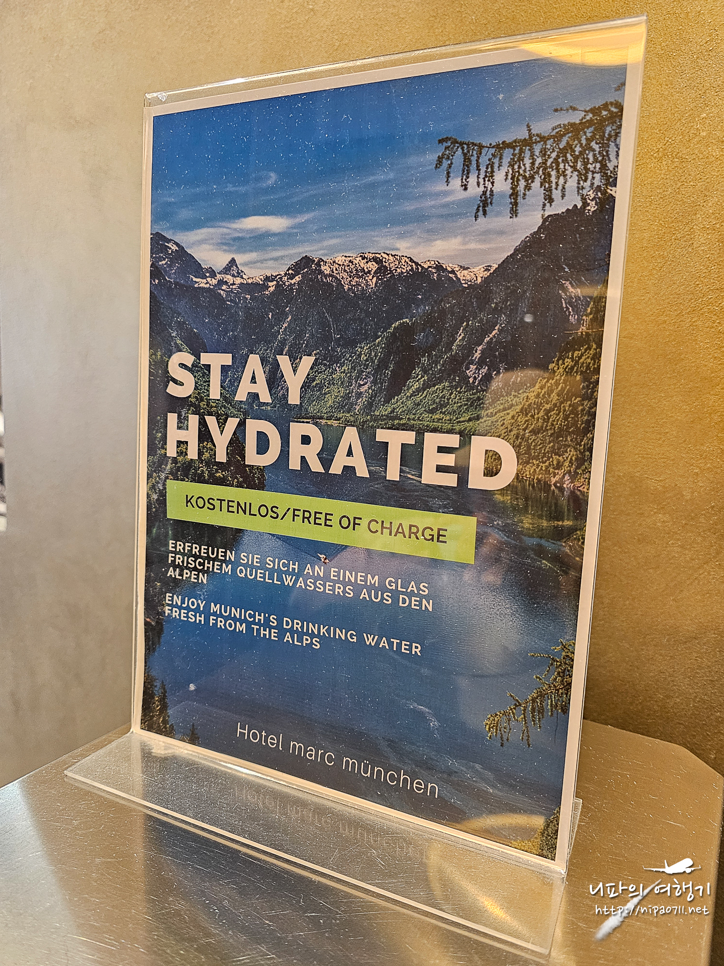 이게 유럽은 식당등에서도 물을 돈 받기도 하고, 무엇보다 한국이나 일본과 달리 24시간 편의점이라는 개념도 없어서 말이죠. 뮌헨 곳곳에 식수대가 있다고 하지만, 호텔 로비의 정수기 만큼 좋은 것은 없을겁니다.