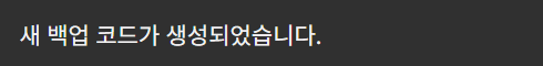 실제로 백업 코드 항목에 보면, 이용한 코드가 사라진 것을 볼 수 있습니다.